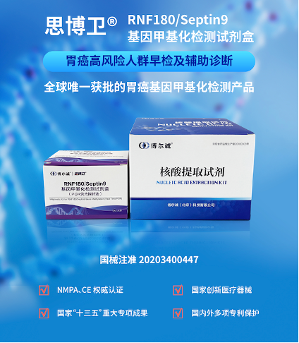 作為目前全球唯一獲批的胃癌基因甲基化檢測試劑盒思博衛®于2020年通過NMPA創新醫療器械產品審批(國械注準20203400447),2022年通過ISO13485醫療器械質量管理體系認證和歐盟CE認證,并已納入北京市甲類醫保。